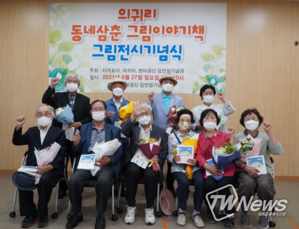 서귀포시는 지난 27일, 김만일 기념관에서 의귀리마을회 주관으로 간소한 전시오프닝과 출판 기념식을 갖고, 어르신들의 작품 전시회를 축하했다. 전시작품은 어르신 그림책(통합본1권)과 그림 원화(20여점)이며, 찾아오시는 손님에게 선착순 100부를 배부하고 있다.