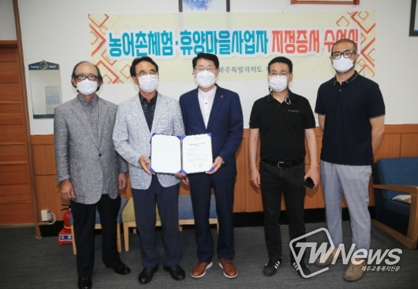 [제주교통복지신문 김현석 기자] 안동우 제주시장은 7월 9일 집무실에서 농촌체험·휴양마을 사업자로 지정된 구좌읍 김녕리 농촌체험휴양마을협의회 대표에게 증서를 수여하고, 앞으로의 사업 운영방향에 대한 의견을 청취했다.