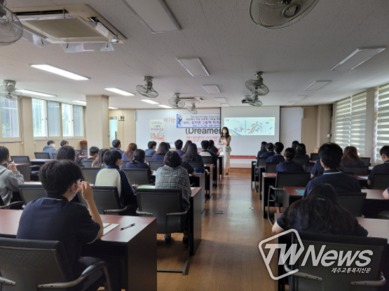 [제주교통복지신문=박희찬 기자] 제주도교육청 한수풀도서관은 학교도서관 협력 및 독서교육 강화를 위해 지난 7월 12일 오전 10시 30분 애월고등학교 학생 30여명을 대상으로‘백년아이’,‘넘어’의 저자인 김지연 작가를 모시고 ⸢그림책 작가와의 만남⸥ 을 운영했다.