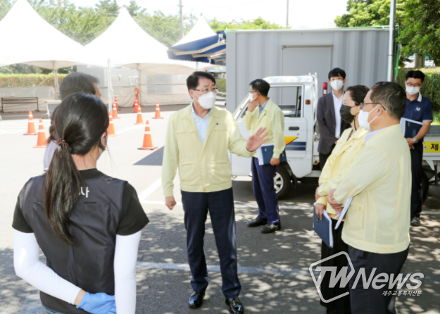 안 시장은 “무더위 폭염 속에서 방호복을 착용하고 코로나19의 검사를 진행하는 의료진에게 제주시민을 대신해 고마운 마음을 전한다”고 격려했다.