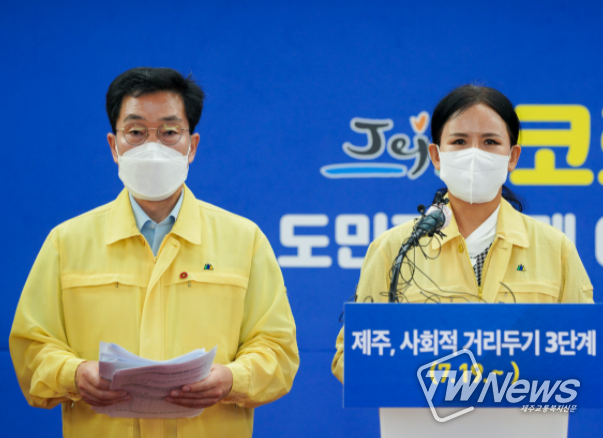 원희룡 지사는 “도민들의 피로가 심하고 특히 영세한 서민들이 어려움에 처해 있는 것은 알지만 전국적으로 확진자가 최고점을 기록하고 있는 상황에서 강도 높은 방역 조치를 취하는 것은 불가피하다”고 설명했다.
