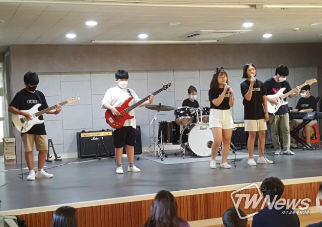 [제주교통복지신문=박희찬 기자] 제주도교육청 제주남초등학교에서는 2021년 7월 20일 ~21일 오전 8시 30분부터 9시까지 락밴드동아리‘시크릿’의 여름방학 맞이 공연을 개최했다.