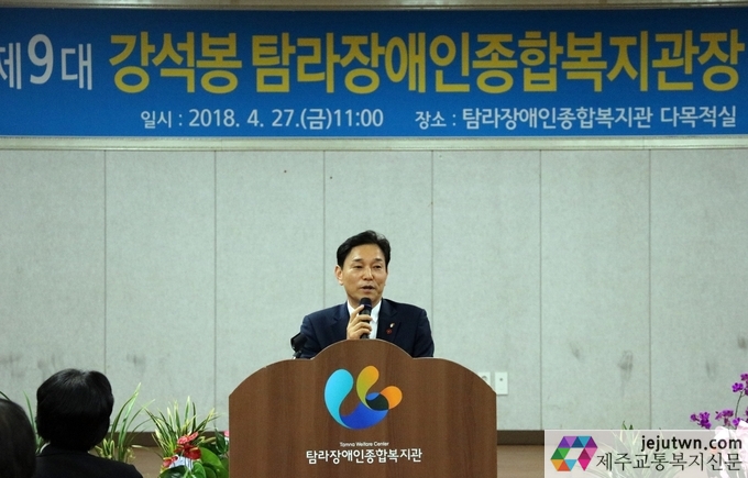 탐라장애인복지관 9대 관장으로 임명된 강석봉 발달장애인지원센터장이 27일 취임식을 갖고 정식 업무에 돌입했다.