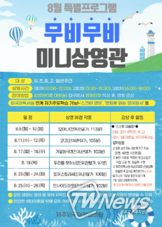 [제주교통복지신문=박희찬 기자] 제주도교육청 제주국제교육원은 8월 9일부터 8월 26일까지 제주외국어학습센터 8월 특별프로그램‘무비무비’프로그램을 운영한다.
