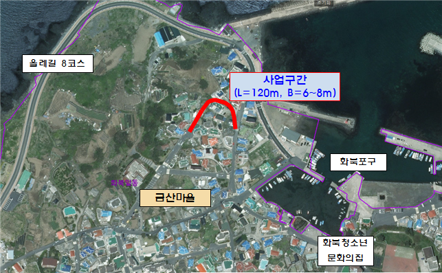 화북 금산마을내 막다른 도로인 진서로에서 금산5길 일대는 도로폭 협소로 민원이 잦았으며, 특히 화재 등 각종 재난시 소방도로 확보가 어렵다는 지적을 받던 곳이다.