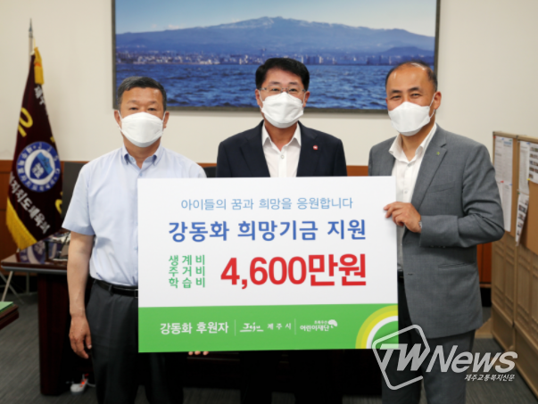 [제주교통복지신문 김현석 기자] 제주시에서는 10일, 제스코마트 강동화 대표의 고액기부로 조성된 「강동화 희망기금」 후원금 전달식을 시장 집무실에서 개최했다고 밝혔다.