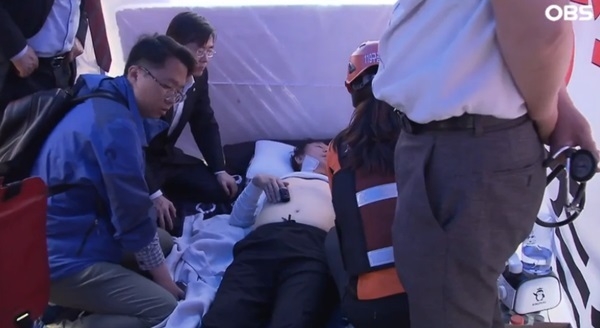 한편 장제원 수석대변인은 앞서 이날 오전 11시 30분쯤 "단식 8일째인 김성태 원내대표가 갑자기 호흡곤란을 겪고 있다"고 밝혔으며, 이후 단식 농성중이던 천막에 도착한 의료진은 김성태 원내대표의 건상상태를 체크한 뒤 병원 이송을 결정했다.