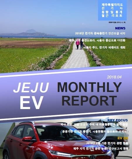 제주연구원 전기차정책연구센터가 발행한 제주EV리포트 2018년 4월호에서는 환경부가 주관하는 전기차 완속충전기 민간보급 사업을 비롯 전기차 퍼레이드 등의 소식을 전하고 있다.