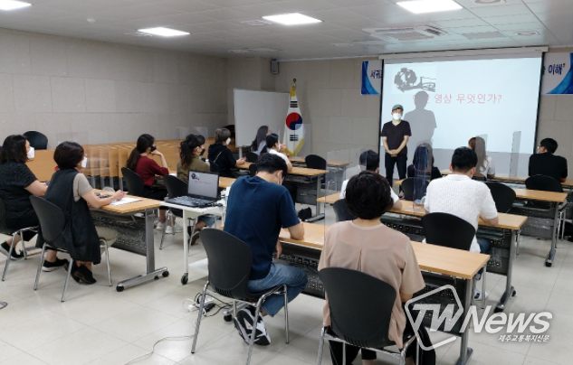 이번 교육은 서귀포시 관내 노인복지 관련 종사자 16명을 대상으로 권영배 대표(Ask film 좋은 영화제작 연구소)가 영화 촬영기법을 바탕으로 동영상 촬영 기술 강의했다.