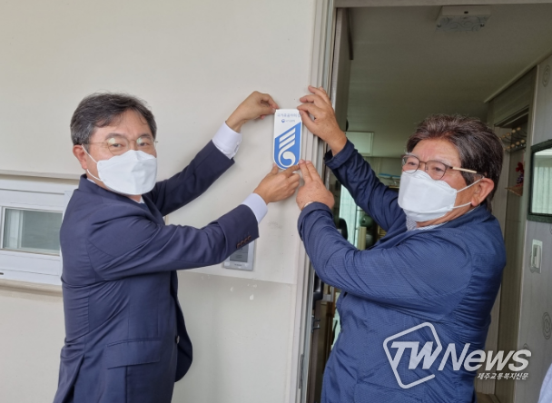 [제주교통복지신문 김현석 기자] 이남우 국가보훈처 차장이 25일 제주출신 호국영웅 故 강승우 중위의 유족인 강응봉씨 집을 방문해 ‘국가유공자의 집’ 명패를 달고 위문했다.