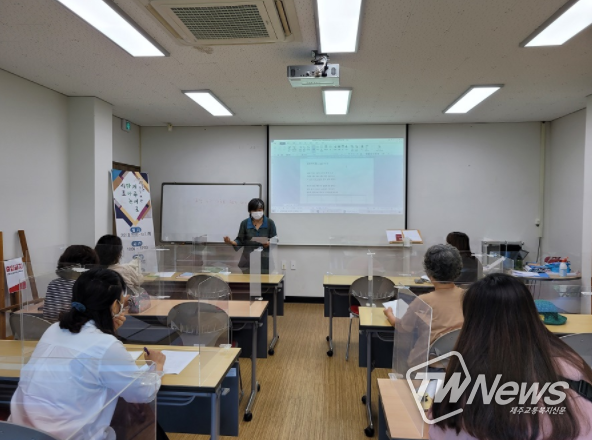 지난 8월 19일 개강한 이 강좌는 10월 7일까지 매주 목요일 오전 10시부터 진행되며, 총 8회차 동안 시인 김영란 선생님의 지도로 시조의 기본 이론과 작법을 배우고 제주어를 활용한 시조를 창작하게 된다.