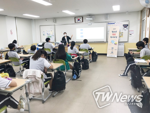 [제주교통복지신문=박희찬 기자] 동녘도서관은 9월 6일 김녕중학교에서 1학년을 대상으로 2021년 청소년 명랑독서 교실을 개강했다.