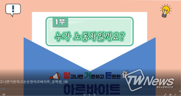 청소년 노동인권 온라인 교육영상은 중학생용 「누가 노동자일까요?」와 「소중한 노동, 존중받는 노동자」각 1부, 고등학생용 「알고 나면 거뜬하고 든든한 아르바이트」 2부 등 총 4편을 제작했다.
