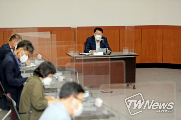 [제주교통복지신문 김현석 기자] 안동우 제주시장은 8일 오전 제주형 사회적 거리두기 4단계 격상에 따라 각 국장 등 최소한의 인원이 참여한 가운데 주간 간부회의를 주재했다.