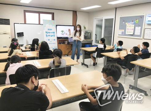 [제주교통복지신문=박희찬 기자] 동녘도서관은 9월 7일 오후 4시에 종달지역아동센터에서 초등학생 1~4학년 대상의 2021년 왁자지껄 놀이 교실을 개강했다.