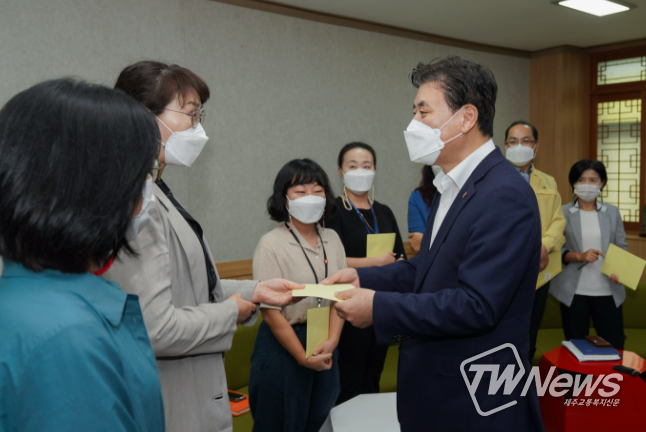 구만섭 권한대행은 13일 오후 1시 30분 소통회의실에서 추석 연휴 종합상황실을 운영하는 19개 부서에 격려품을 전달하고, 코로나19 위기 속에서 도민들과 제주 방문객들이 안전하고 편안한 추석 연휴를 보낼 수 있도록 만전을 다해줄 것을 주문했다.