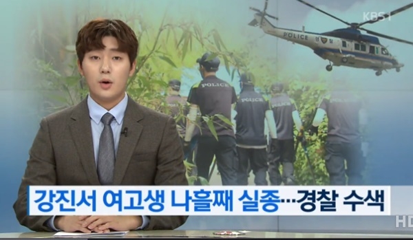강진 여고생 실종이 있었던 날은 지난 16일. 고등학교 1학년 학생인 이 여학생이 있는 곳을 찾아내기 위해 400명이 넘는 경찰 병력을 비롯해, 열감지 헬기까지 투입시켰지만, 여전히 ‘수색 중’이라는 말만 되풀이 할 뿐, 실종된 장소를 찾지 못하고 발만 동동 굴리고 있다.