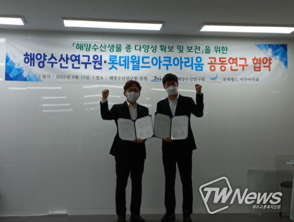 [제주교통복지신문 김현석 기자] 제주도 해양수산연구원은 15일 롯데월드 아쿠아리움(관장 고정락)과 해양수산생물 종 다양성 확보 및 보전을 위한 업무협약을 체결했다.