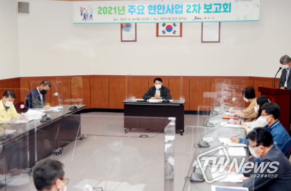 [제주교통복지신문 김현석 기자] 제주시는 9월 16일, 제주시청 본관 회의실에서 안동우 제주시장 주재로‘2021년 주요 현안사업 2차 보고회’를 개최했다.