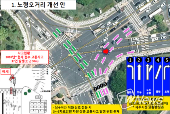 이에 제주시와 교통 관련 유관 기관은 지난 8월 26일 제주시 내 사고 위험 교차로에 대한 현장점검을 실시했으며, 노형오거리 등 5개 교차로를 시범 사업 대상지로 선정했다.