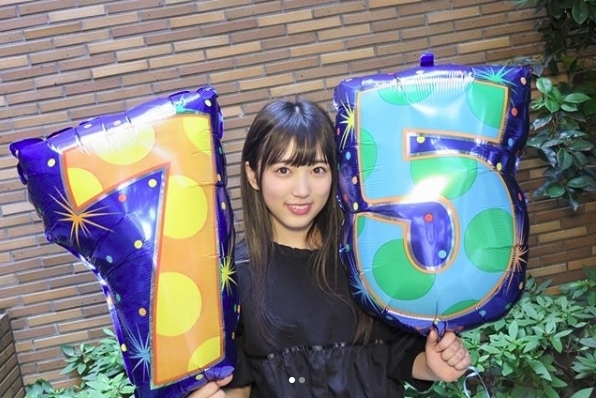 공개된 사진 속 야부키 나코는 이날을 의미하는 모형을 들고 사진기를 응시한 채 포즈를 취하고 있다.