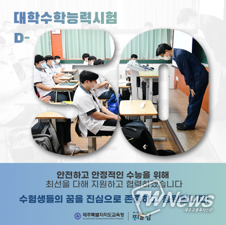 [제주교통복지신문=박희찬 기자] 제주도교육청은 9월 29일 대학수학능력시험 D-50일을 맞아‘2022학년도 대학수학능력시험 시험장 준비 상황’을 발표했다.