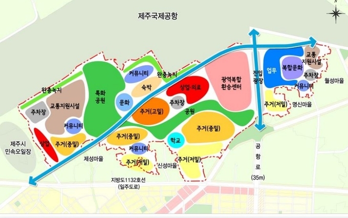또한, 공항로변으로 진입광장을 조성하여 제주 관문으로서 도민과 관광객을 위한 열린광장을 조성하고, 흘천 주변으로 대규모 문화․생태․쉼 4계절 휴양공간으로 특화공원 조성을 제시하고 있다.