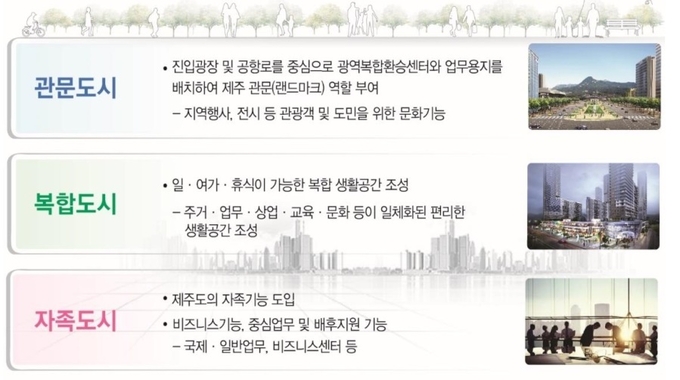 이번 용역에서는 모두가 환영받는 제주 관문도시 「JEJU WELCOME CITY」를 콘셉트로 관문도시, 복합도시, 자족도시 구상안이 제시됐다.