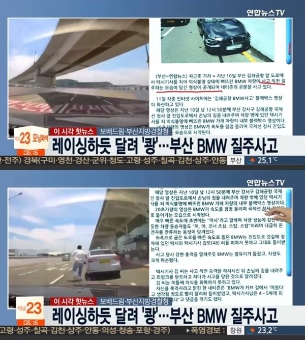 한편 지난 10일 오후 bmw를 몰던 서른다섯 살 운전자 ㄱ씨는 부산 김해공항 국제선청사 진입로에서 무서운 속도로 달리다가 승객의 짐을 내려주던 택시기사 ㄴ씨를 치는 사고를 일으켰다. 이 사고로 택시기사 ㄴ씨는 몸을 크게 다쳤고, 아직까지 깨어나지 못하고 있는 것으로 전해졌다.