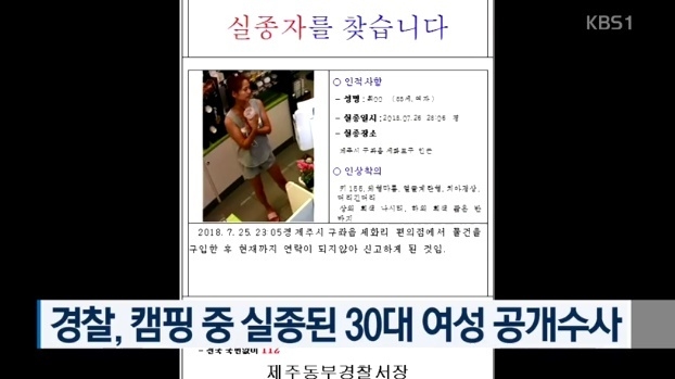 30일 제주동부경찰서에 따르면 지난 25일 가족과 함께 캠핑을 하던 30대 여성이 편의점에서 물건을 사는 모습을 마지막으로 실종됐다.