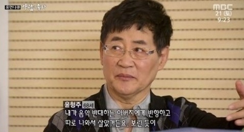 당시 윤형주는 "대학 시절 진로 선택을 두고 아버지와 갈등을 빚었다"며 "음악에 반대하는 아버지에게 반항하고 따로 나와서 살았다. 아버지는 내가 살던 아파트에 와서 가만히 앉아있다 가셨다"고 전했다. 이어 "당시 의대에 재학 중이었으나 의사의 꿈을 포기하고 음악을 선택했다"며 "반대를 무릅쓰고 하는 아들을 보면서 마음속으로 울고 계시지 않으셨을까 그런 생각이 든다. 아버지 생각을 하면 죄송한 생각이 든다"고 고전했다.