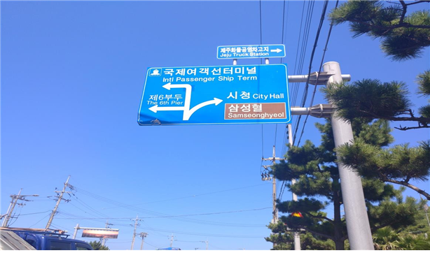 현재 제주시 관내 도로표지판은 총 977여개로 주요교차로 및 간선도로에 표시되는 방향표지 821개, 읍면동 사이의 경계를 나누는 경계표지 13개, 목적지까지의 거리를 안내해주는 이정표지 113개, 노선명을 나타내는 노선표지가 30개로 집계됐다.
