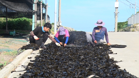 올해에는 가뭄이 들어 예년보다 작황이 좋지 않지만 미역이 많든 적든 한 철 수확이 끝나면 속이 후련하다는 부부..일곱 손자들 용돈이나마 줄 수 있다면 만족한다.