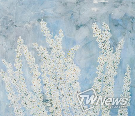최지영 작가는 전주 삼천 천변을 자주 걸으면서 만난 피고 지는 꽃을 화폭에 담았다. 그렇게 사계절을 돌고 돌아 만난 들꽃도, 잡초도 많기도 많지만 작가는 굳이 이름을 알고자 하지 않고 그 순간을 눈으로 포착해 그림으로 옮겼다. 손으로 옮기는 순간 눈으로 본 것과 다르다는 것을, 마음에 비유해 작품으로 완성했다.
