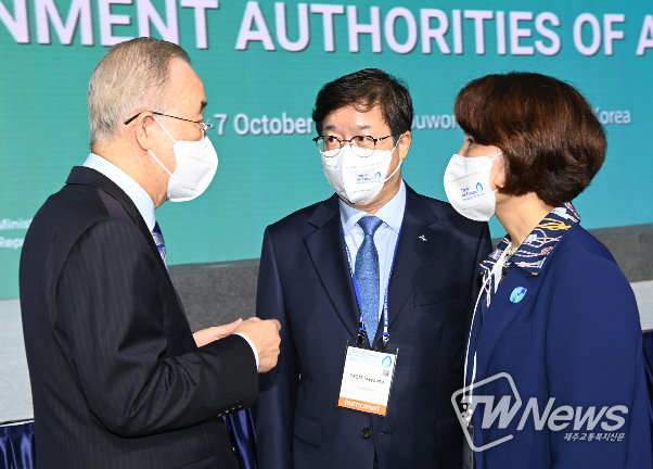 [제주교통복지신문 김지홍 기자] 수원시는 7일 오전 수원컨벤션센터에서 개최된 제4차 아·태 환경장관포럼 장관급 본회의 개회식에서 염태영 수원시장이 반기문 전 UN 사무총장, 한정애 환경부 장관과 환담을 나누었다고 밝혔다.
