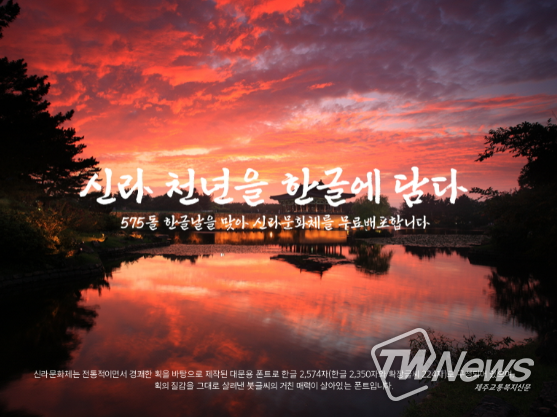 [제주교통복지신문 김지홍 기자] 경주시는 제48회 신라문화제의 일환으로 찬란했던 신라의 전통을 담은 전용서체 2종을 개발해 오는 9일 한글날에 전격 공개할 예정이라고 8일 밝혔다.