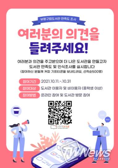 [제주교통복지신문 김지홍 기자] 부평구구립도서관이 11일부터 31일까지 지역 주민을 대상으로 도서관 이용 만족도 및 도서관 영향에 관한 인식 조사를 진행한다.