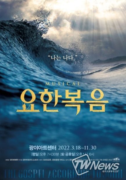 [제주교통복지신문 김대훈 기자] '요한계시록''더 북; 성경이 된 사람들''루카스' 등 완성도 높은 화제의 창작 뮤지컬을 선보여온 광야아트센터가 오는 3월18일, 창작 뮤지컬 '요한복음''의 새로운 시즌을 개막, 11월30일까지 장기 공연에 나선다.