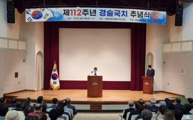 [제주교통복지신문 전희연 기자] 제주특별자치도와 광복회 제주특별자치도지부는 29일 오전 11시 제주시 조천읍 항일기념관 내 영상실에서 제112주년 경술국치 추념식을 개최했다.