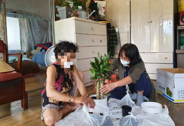 이 프로그램은 거동이 불편한 고령 부부 등 지역 내 치매 가족 10가구를 선정하여 1가구당 4회기 프로그램으로 원예 요법, 천연염색 스카프 물들이기 등을 활용한 체험 및 치매 환자 돌봄 교육을 진행하고 있으며, 이를 통해 치매 환자를 돌보면서 생겨나는 심리적 부담감 등 치매 가족의 스트레스 해소와 관리를 위한 노력에 최선을 다하고 있다.