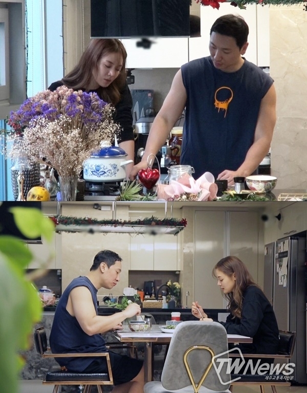 한편, 운동을 마친 두 사람은 늦은 식사를 준비했다. 평소 음식에 관해서라면 그 누구보다 예민하고 진지한 라이머와 음식에 전혀 관심이 없는 안현모는 ‘일주일 된’ 북엇국을 두고 또다시 공방전을 펼쳤다. 그 모습에 안현모는 결혼 전 라이머가 “음식 취향이 똑같다”고 했던 말을 떠올리며 “당신 이중생활 한 거잖아. 어떻게 그렇게 연기를 잘 했어?”라고 물었다.
