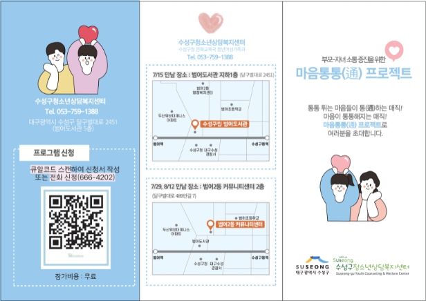 [제주교통복지신문 김강석 기자] 대구 수성구 청소년상담복지센터가 여름 방학을 앞둔 7월, 부모-자녀 소통 증진을 위한 ‘마음 통통(通) 프로젝트’ 프로그램을 운영한다.