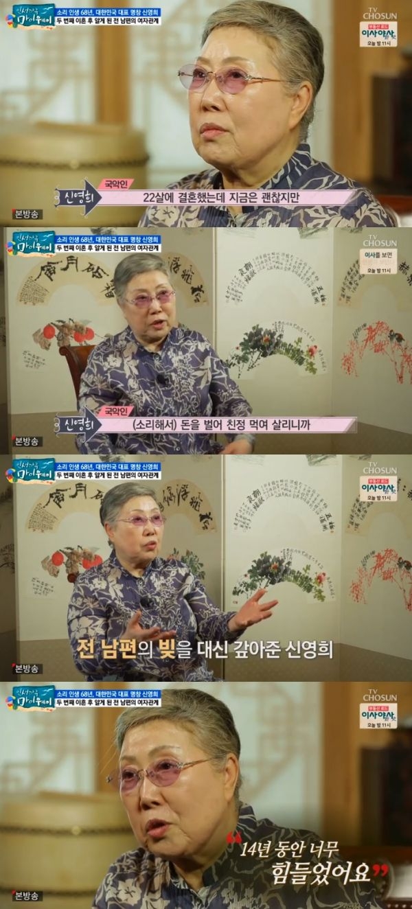 [제주교통복지신문 편집부] 3일 방송된 TV조선 ‘인생다큐 마이웨이’에 출연한 신영희는 “22살에 결혼했다. 그 때만 해도 가부장적이라 나가서 소리하는 걸 남편이 싫어했다. 돈을 벌어 친정 먹여 살리니까 좋아할 남자가 없었다”고 첫 번째 이혼 사연을 밝혔다.