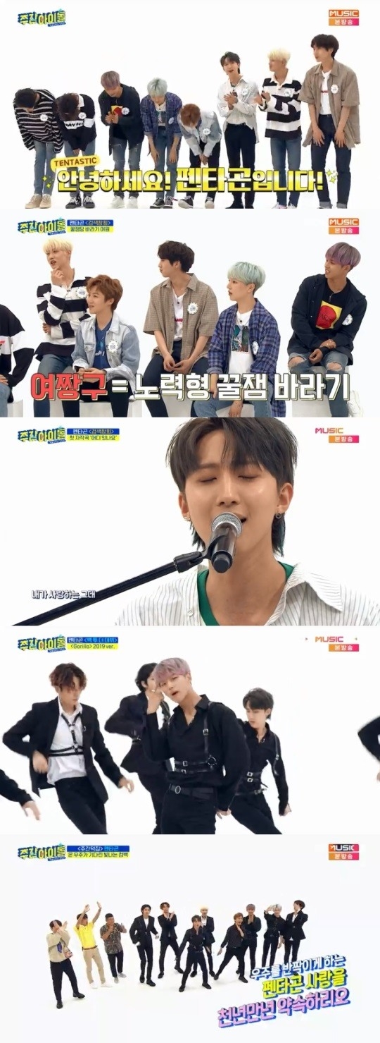 리더 후이는 "자체제작돌 펜타곤입니다. 노래도 만들고 춤도 만들고 재킷도 만든다"고 자기소개를 하다가 시간이 부족하자 "사랑해요"라고 센스있게 마무리해 눈길을 끌었다.