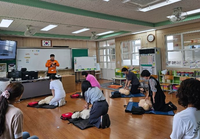 이번 교육은 교직원들의 응급상황 대응 역량을 강화하기 위해 실시됐으며, 심폐소생술, 자동심장충격기(AED) 사용법 등 응급처치 이론교육과 실습교육을 실시했다.