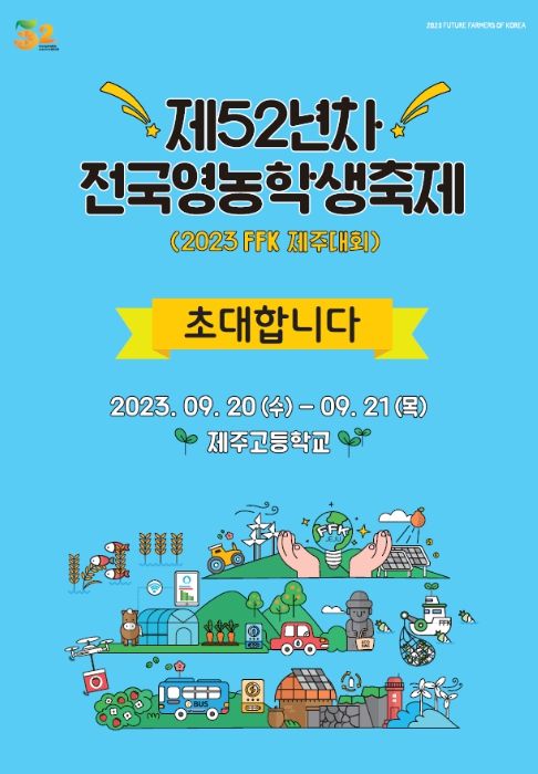 [제주교통복지신문 박희찬 기자] 제주특별자치도교육청은 9월 20일에서 9월 21일까지 '제52년차 전국영농학생축제(2023FFK제주대회)'를 개최한다.