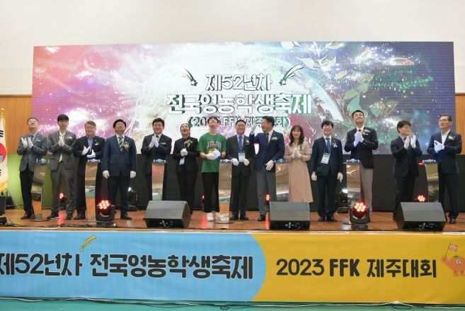 [제주교통복지신문 박희찬 기자] 제주도교육청 제주고등학교는 20일부터 이틀간 제52년차 전국영농학생축제(2023FFK제주대회)를 개최했다. 제주특별자치도교육청과 전국FFK연합회가 공동 주최하고 제주고등학교 주관으로 열린 축제에는 14개 시도 FFK대표단과 교육부 및 농림축산식품부 관계자, 시도교육감, 농업계 고등학교장, 인솔 교사 등 1,400명이 참가했다.