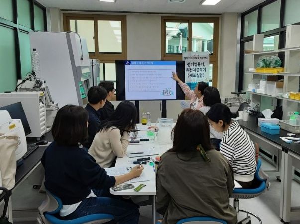 '2023 첨단기자재 활용 직무연수'는 도내 과학 교사의 첨단기자재 활용 능력 강화를 목적으로 첨단기자재 이용 수업 활용 사례 발표 및 초고속카메라, 전자현미경, 실시간 유전자분석기 등 총 8가지 첨단기자재 활용 실습으로 진행됐다.