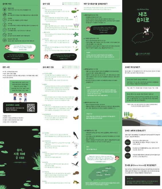 습지맵‘제주 습지로’는 습지의 정의 및 야생생물에 대한 정보와 제주 람사르습지, 지역별 내륙습지, 연안습지, 인공습지 안내 등 제주 습지에 대한 유익한 정보를 담고 있다.