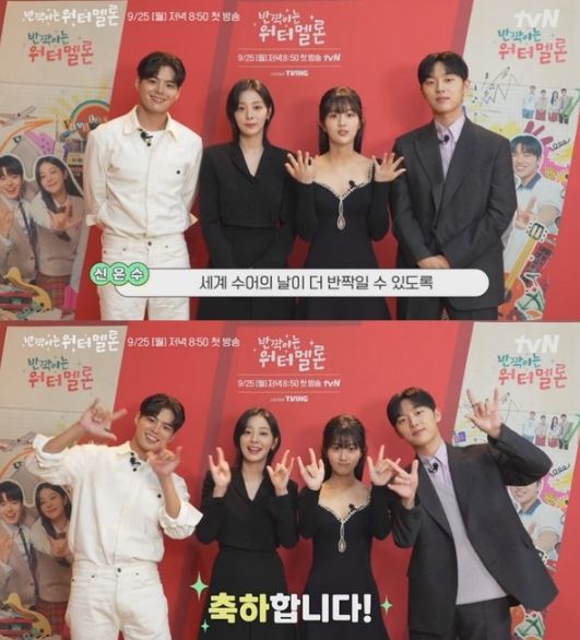 려운(은결 역), 최현욱(이찬 역), 설인아(세경 역), 신은수(청아 역)는 9월 23일(토) UN이 지정한 세계 수어의 날을 기념해 수어로 축하 멘트를 전하는 등 수어에 대한 인식 개선에 앞장서 드라마의 진정성과 의미를 더했다.